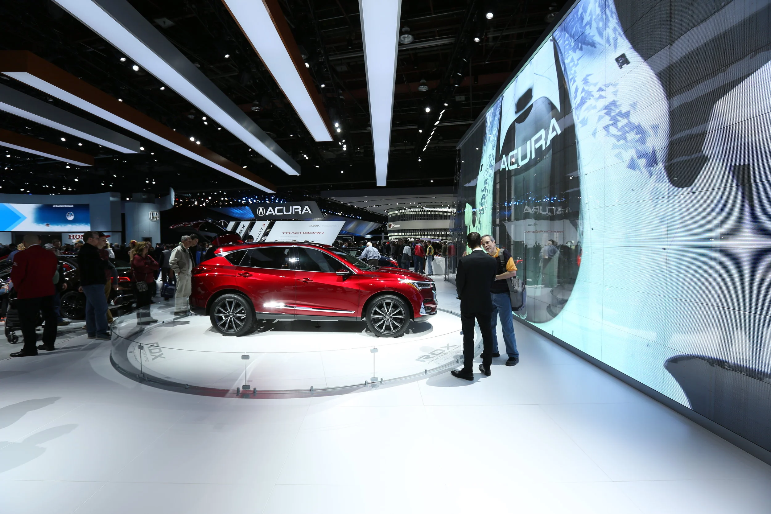 Seven minutes of originally created 3D and 2D content, integrated with client and agency-provided videos and prepared for display on a transparent LED screen, paired with video projected on a metallic rear wall to define a 3D media space.