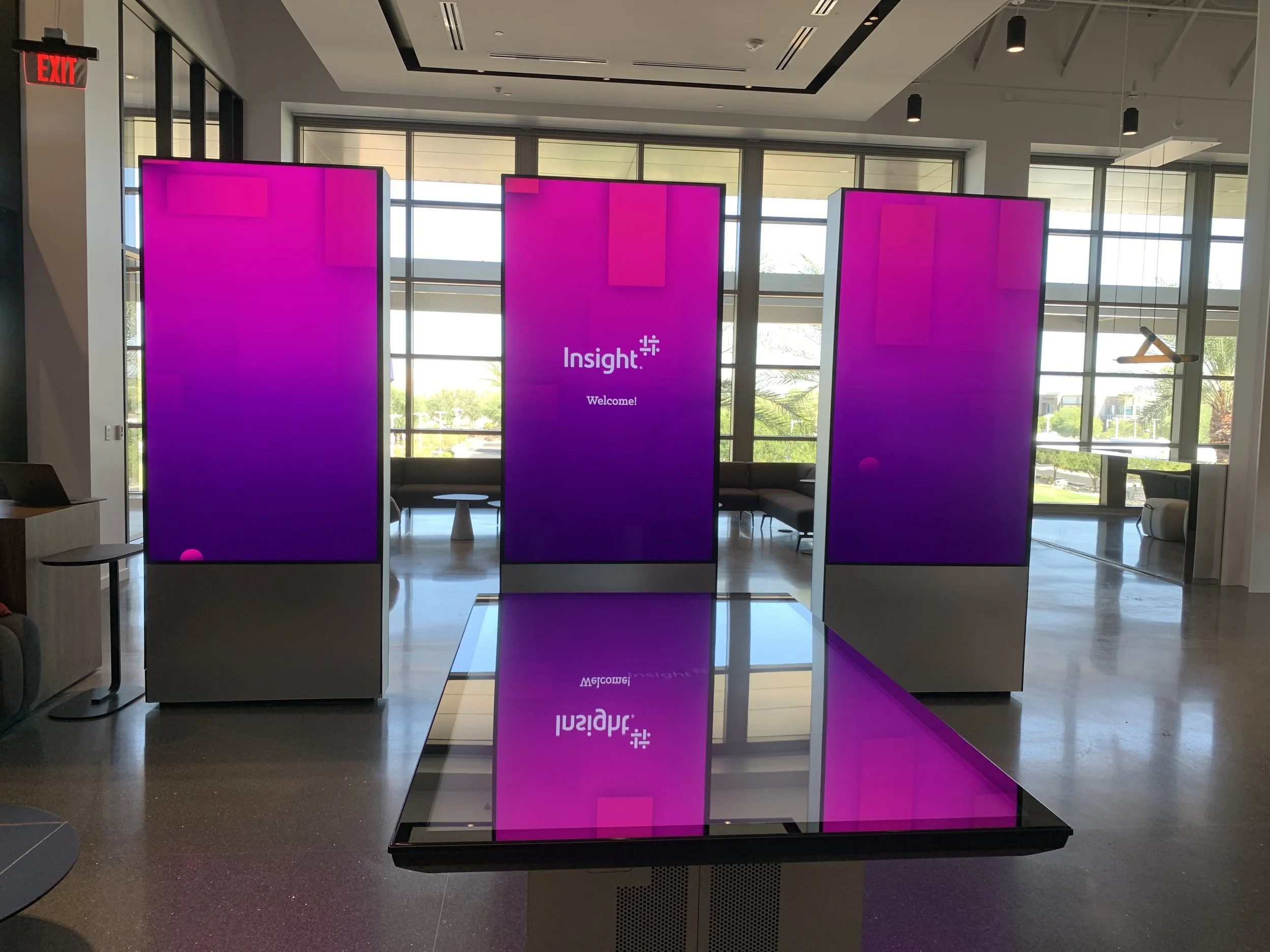 Prisms: Three banks of synchronized vertical screens that celebrate Insight employees and company culture.